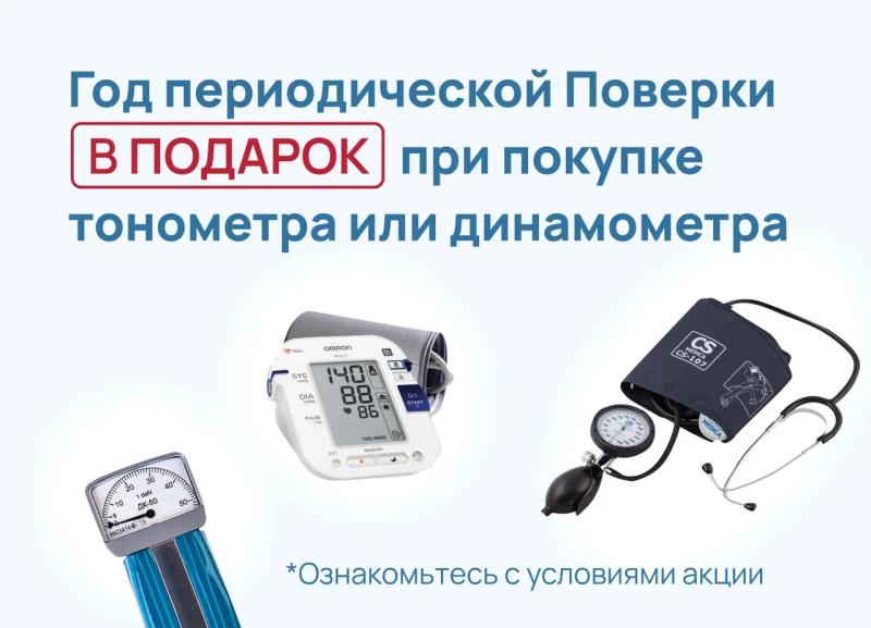 Акция действует в течение года после истечения Первичной поверки прибора (тонометра или динамометра модели ДК-25 или ДК-50, что указано в паспорте изделия).