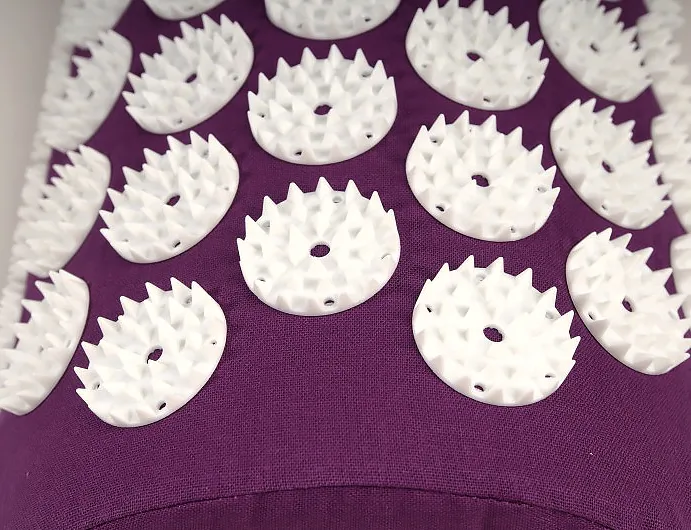 Поверхность коврика покрыта пластиковыми шипами, создающими множество акупунктурных точек. Шипы изготовлены из нетоксичного материала, не вызывают аллергию, закреплены на поверхности коврика при помощи сильного нетоксичного клея.