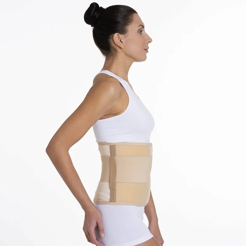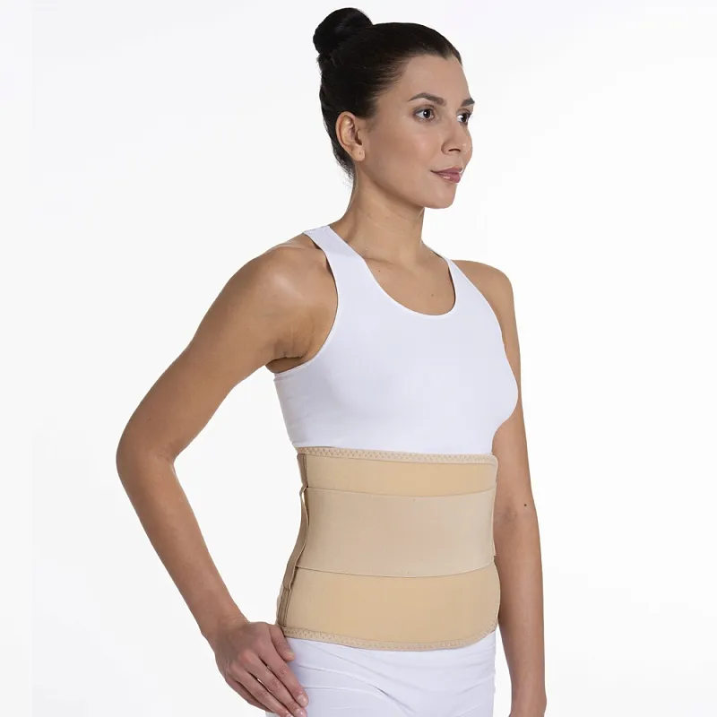 Пояс (корсет) послеоперационный Комф-Орт К 604 - выполнен из комбинированных материалов. Основа изделия из капровелюра, лента стяжка из медицинского эластика. Обеспечивает фиксацию послеоперационного шва после операций на органах брюшной полости. Поддерживает переднюю и боковую брюшные стенки, а также поясничную область. Препятствует образованию послеоперационных грыж.