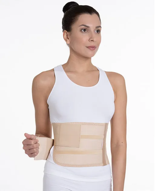 Ортез выполнен из медицинского эластика. Обеспечивает фиксацию послеоперационного шва. Поддерживает переднюю и боковую брюшные стенки, а также поясничную область. Может использоваться для фиксации нижнегрудного отдела у женщин и грудного отдела у мужчин. Бандаж препятствует образованию послеоперационных грыж. Также данный пояс показан при наличии дренажей на передней брюшной стенке, которые удобно выводить между панелями, не нарушая их функции. Высоту пояса выбирают в зависимости от длины послеоперационной раны и роста человека. Пояс должен полностью перекрывать послеоперационную рану.