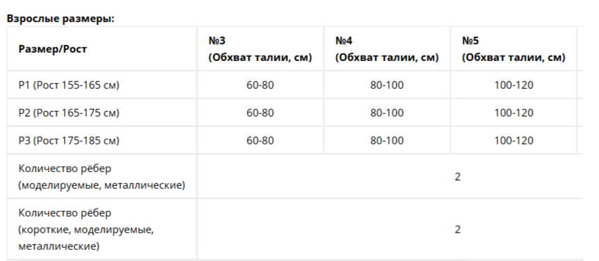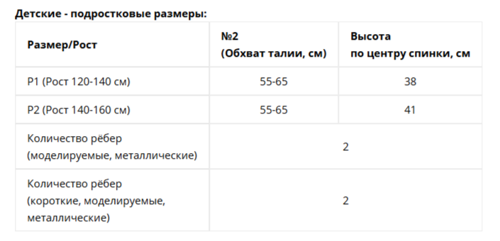 2 металлических ребра жесткости вдоль всего ствола позвоночника и 2 металлических коротких, моделируемых по форме спины.