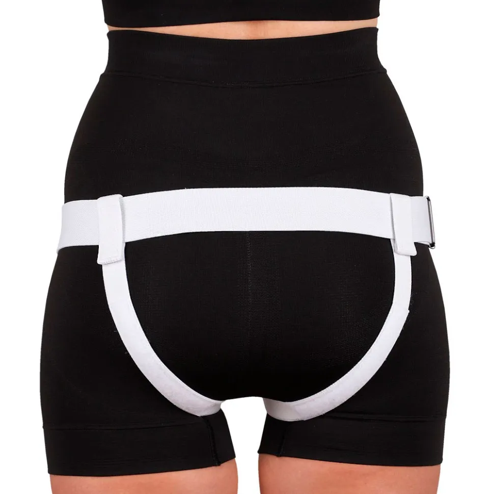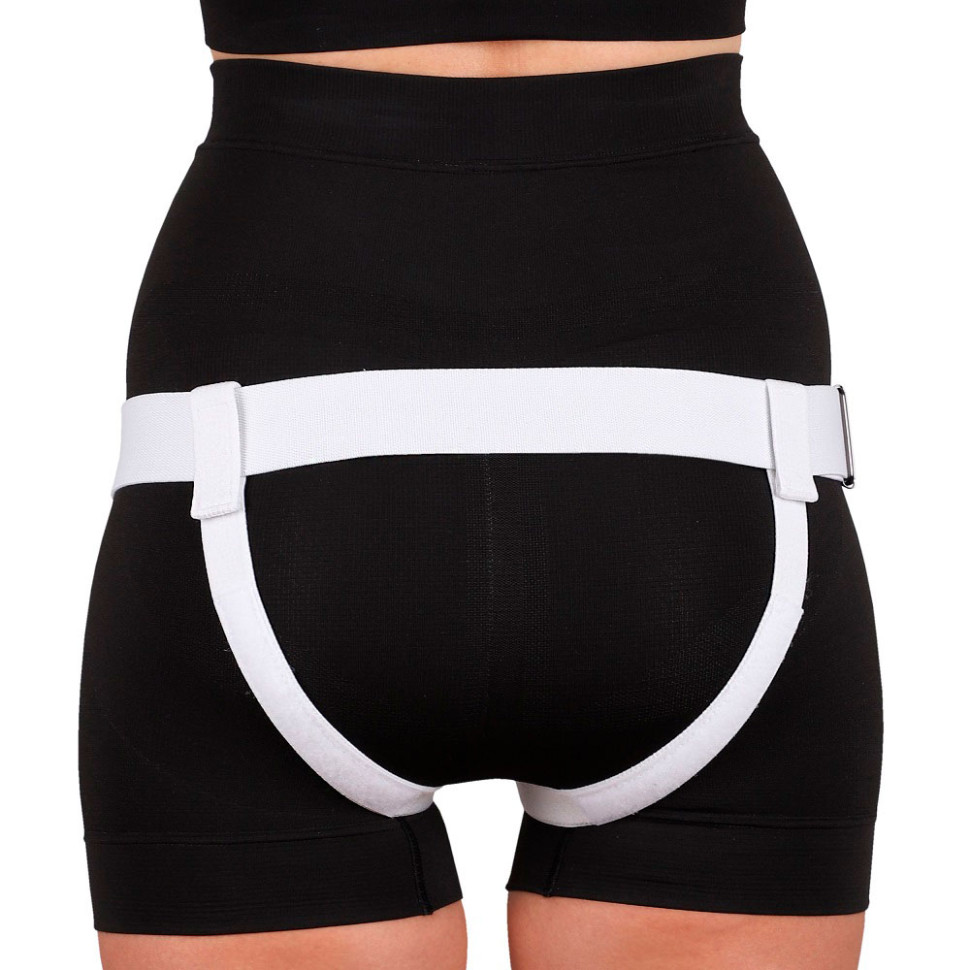 - Лямки бандажа пропускают между ног и закрепляют сзади на поясе. Для снятия бандажа достаточно расстегнуть пояс