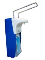 Универсальный настенный локтевой дозатор (пластик) предназначен для подачи жидких кожных антисептиков, расфасованных в пластиковые флаконы объемом не более 1 л со стандартным диаметром горлышка 28 мм.
