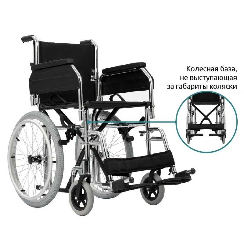 Кресло-коляска инвалидная малогабаритная Ortonica Home 60 отличается компактными размерами и колесной базой, не выступающей за габариты коляски. Может проходить в узкие дверные проемы.
