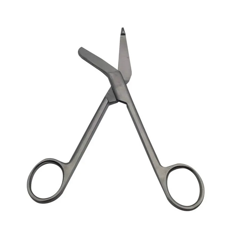 - Одно лезвие тупоконечное, на втором лезвии имеется утолщение в виде пуговки. Эта «пуговка» позволяет легко подвести лезвие под повязку и не травмировать пациента.