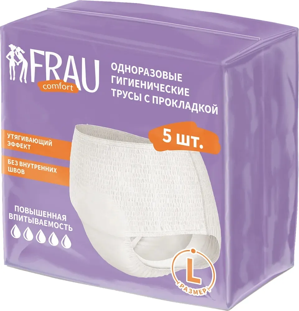 Одноразовые гигиенические трусы с прокладкой предназначены для соблюдения гигиены в послеродовом периоде, после гинекологических вмешательств, в критические дни или при недержании мочи.