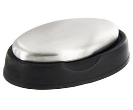 Металлическое мыло всего за 30 секунд поможет устранить с рук запах чеснока, лука, табака, не вызывая раздражения на коже. К мылу прилагается специальная подставочка, на которой оно может храниться. "Ликвидатор" имеет неограниченный срок службы и, несмотря на свой состав, не ржавеет и не оставляет мыльных разводов.