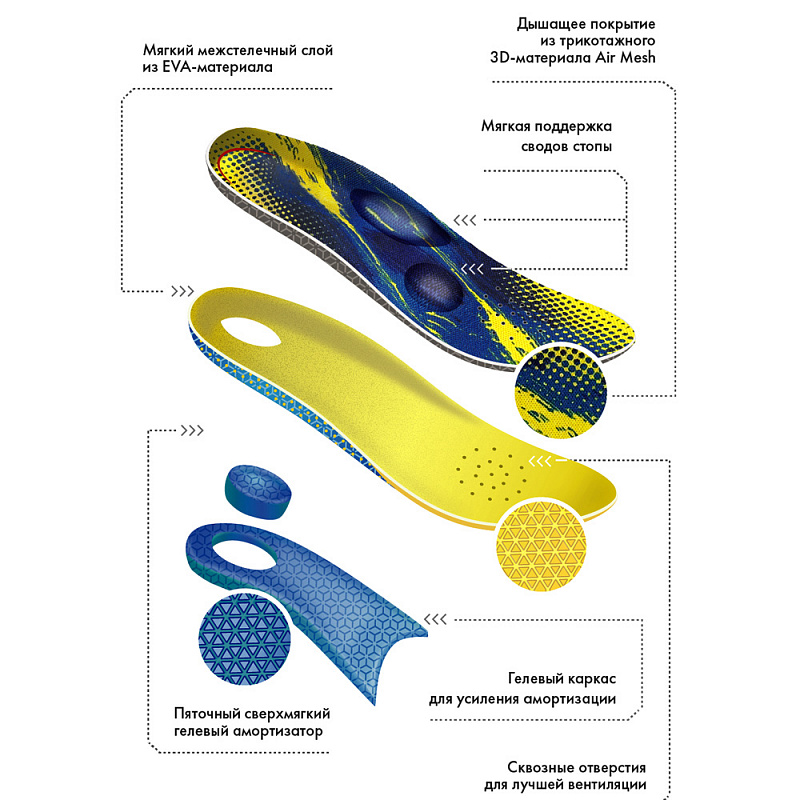 гель, ЕVА-материал, трикотажное синтетическое полотно MESH