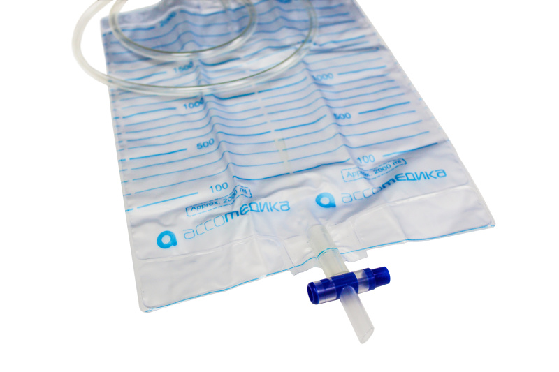 сборным мешком объемом 2 л, имеющим отверстия для крепления к кровати или кушетке (стенки сборного мешка прозрачны и имеют градуировку для лучшей видимости цвета и определения количества мочи)