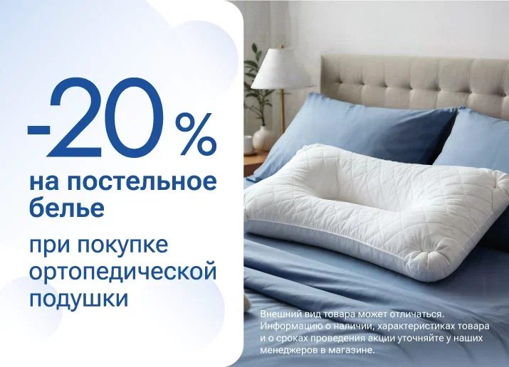 -20% на постельное белье, при покупке любой ортопедической подушки
